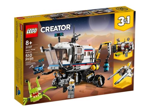 - W zestawie LEGO Creator 3 w 1 Łazik kosmiczny (31107) dzieci znajdą klocki do zbudowania łazika, bazy lub statku kosmicznego, które zachęcają do kreatywności. Budowanie i przebudowywanie pozwala bawić się bez końca!
