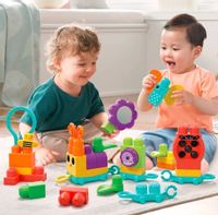 Mali konstruktorzy będą bawić się i rozwijać zmysły wraz z tym uroczym pociągiem w kształcie kolorowej gąsieniczki. Dzieci mogą zbudować sensoryczną gąsieniczkę z wagonami i sznurkiem do ciągnięcia z przodu, a następnie zabrać ją na przygodę! Do wagoników można przyczepić biedroneczkę z elementami do wciskania, ślimaczka z funkcją przekręcania i klikania oraz motylka ze skrzydełkami z ciekawymi powierzchniami, aby zabrać zwierzątka na przejażdżkę pełną sensorycznych wrażeń! Maluchy mogą też odkryć lustereczko-kwiatuszek, antenki oraz pszczółkowy drążek z koralikami. Sensoryczny zestaw konstrukcyjny dla dzieci w wieku od 1 do 3 lat z 30 dużymi klockami (w tym elementami specjalnymi) Zawiera 8 funkcji sensorycznych do rozwijania zmysłów dotyku, wzroku i słuchu Dzieci mogą zbudować pociąg-gąsieniczkę, dołożyć urocze zwierzątka i wybrać się na przejażdżkę, ciągnąc za sznurek Klocki są kompatybilne ze wszystkimi zabawkami Mega Bloks Zabawka rekomendowana przez Fisher-Price. Pomaga rozwijać zdolności motoryczne, kreatywność i samodzielne myślenie.