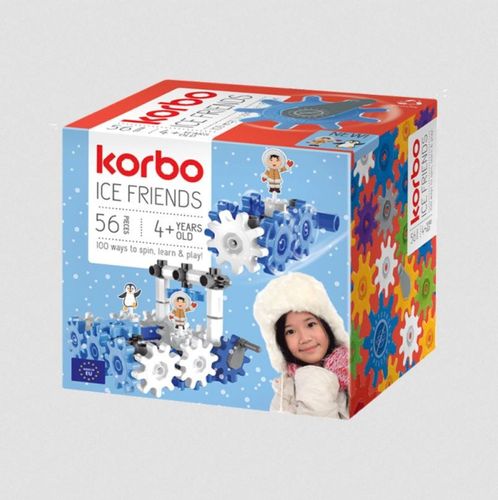 Czas na lodową przygodę! Korbo ICE FRIENDS to zestaw 56 ruchomych elementów, którego podstawą jest koło zębate w kolorystyce lodowej Arktyki. Kolorowe figurki Eskimosa i Pingwina pozwolą dzieciom na tworzenie własnych historyjek w krainie wiecznego lodu. Bohaterowie zestawu dołączeni do opakowania i umocowani na specjalnych zatyczkach kompatybilnych z najbardziej popularnymi klockami mogą również się kręcić. Równocześnie z elementów można zbudować dwa skutery śnieżne dla pingwina i Eskimosa oraz Igloo z otwieranym i zamykanym dachem. Klocki pobudzają do tworzenia własnych konstrukcji w zabawie powstał już lodołamacz góra lodowa czy karuzela do pingwina.