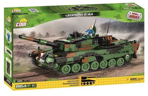 Leopard 2 A4 to niemiecki czołg podstawowy III generacji, który jest następcą czołgu Leopard 1. Jest na wyposażeniu wielu krajów świata i w swych siłach zbrojnych posiada go m.in.: Austria, Chile, Dania, Finlandia, Grecja, Hiszpania, Holandia, Indonezja, Kanada, Katar, Niemcy, Norwegia, Polska, Portugalia, Singapur, Szwajcaria, Szwecja i Turcja. Model został wydany we współpracy z Deutsches Panzermuseum Munster, w którego zbiorach znajduje się ten konkretny wóz o numerze rejestracyjnym Y-678 620, który został odtworzony z klocków konstrukcyjnych COBI. 1