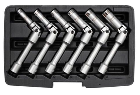 Klucze wykonane ze stali chromowo-wanadowej o symbolu CrV 50BV30. Specjalna konstrukcja klucza z przegubem i oringiem zabezpieczającym pozwala na łatwy demontaż świec żarowych, nawet w trudno dostępnych miejscach. Klucze współpracują z pokrętłem 3/8".