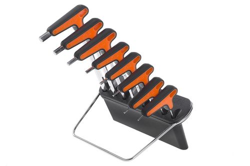 • Ergonomiczny i niepowtarzalny zestaw T/L kluczy sześciokątnych • Wykonany z wysokiej jakości stali • Powleczony podwójnej gęstości tworzywem dla wygodnego i pewniejszego chwytu • Narzędzia posiadają wysoki moment obrotowy oraz dużą twardość, dla długiej żywotności • Uchwyt do ściany i biurka pozwalają trzymać cały zestaw uporządkowany TB-76160 • Zawiera klucze 2, 2.5, 3, 4, 5, 6, 8, 10 mm