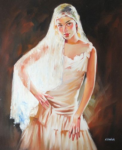 Obraz olejny przedstawiający portret kobiety! Stonowana kolorystyka i piękny efekt światła. Subtelna praca do ozdoby sypialni i innych wnętrz!