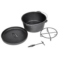 Mały kociołek, dostaną państwo w komplecie z futerałem, pokrywką z wygiętymi krawędziami, przyrządem do podnoszenia pokrywki oraz stojakiem. Futerał chroni przed zabrudzeniami w czasie transportu. Kociołek jest idealny do gotowania, pieczenia, smażenia i do użycia na biwak.