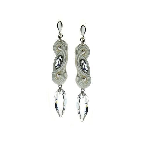 Zjawiskowe kolczyki zrobione ręcznie w technice sutasz. Wykonane w całości z gładkiego srebra najwyższej próby 0,925 oraz materiału. Ozdobione oryginalnymi kryształami i perełkami Swarovskiego. Produkt z certyfikatem. Biżuteria na zamówienie, czas realizacji do 10 dni roboczych. Wymiary: Długość wyrobu: 7 cmSzerokość wyrobu: 1.1 cmPrzybliżona waga: 8 gramDługość kamienia: 2 cmSzerokość kamienia: 1 cm Doskonała jakość wykonania gwarantowana. Do każdego produktu dodajemy eleganckie pudełko i metkę jubilerską z pustym miejscem na cenę - tak przygotowana biżuteria staje się idealnym prezentem. Autentyczność kamieni potwierdzona dołączonym do produktu certyfikatem. Swarovski - ogólnoświatowa marka kryształów, które wzięły swoją nazwę od czeskiego szlifierza szkła Daniela Swarovskiego. W ostatnich latach nazwa Swarovski jest synonimem nie tylko kryształów o doskonałym blasku, ale także kreatywności i innowacyjności, wykazywanych przy projektowaniu własnej linii dodatków, ozdób jubilerskich oraz elementów wystroju wnętrz.