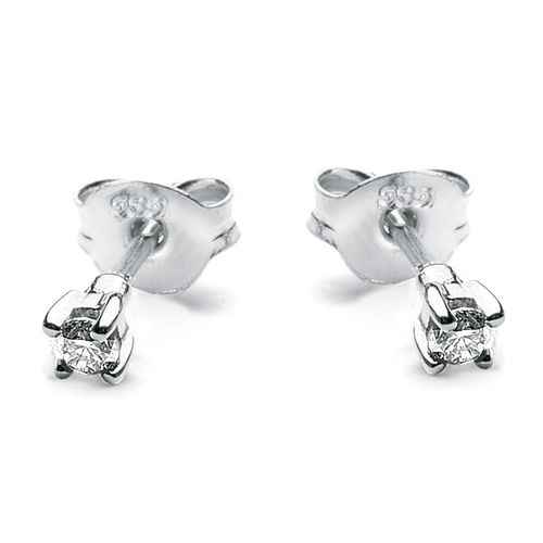 Staviori Kolczyki. 2 Diamenty, szlif brylantowy, masa 0,05 ct., barwa M-O, czystość I1-I2. Białe Złoto 0,585. Średnica 1,7 mm. Grubość 1,7 mm.