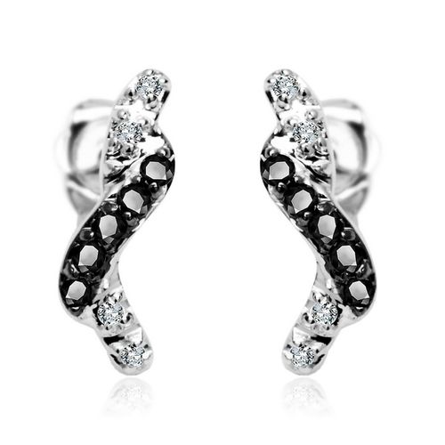 Staviori Kolczyki. 8 Diamentów, szlif brylantowy, masa 0,04 ct., barwa H, czystość I1. 10 Diamentów, kolor czarny, szlif brylantowy, masa 0,10 ct.. Białe Złoto 0,585. Wymiary 3x14 mm.