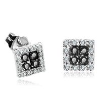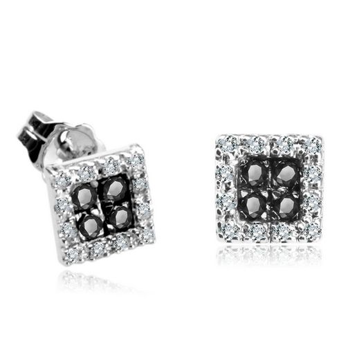 Staviori Kolczyki. 24 Diamenty, szlif achtkant, masa 0,12 ct., barwa H, czystość I1. 8 Diamentów, kolor czarny, szlif brylantowy, masa 0,12 ct.. Białe Złoto 0,585. Szerokość 6 mm.