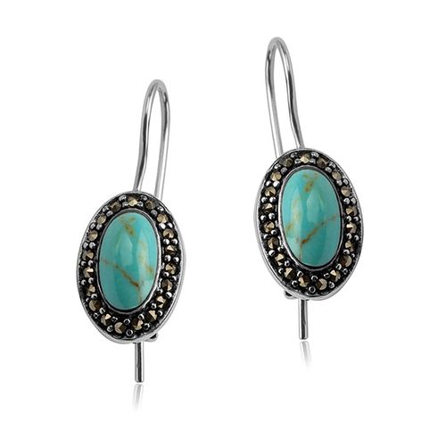 Staviori Kolczyki. Markazyty. Turkus. Srebro 0,925. Szerokość 10 mm. Długość 25 mm.