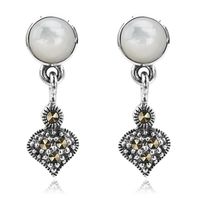 Staviori Kolczyki. Markazyty. Masa Perłowa. Srebro rodowane 0,925. Wymiary 7x22,5 mm.
