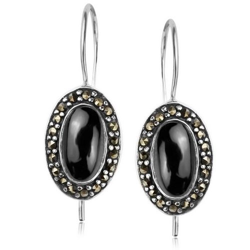 Staviori Kolczyki. Onyks. Markazyty. Srebro rodowane 0,925. Szerokość 10 mm. Długość 25 mm.