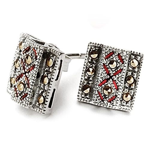 Staviori Kolczyki. Markazyty. Emalia. Srebro 0,925. Wymiary 8x10 mm.