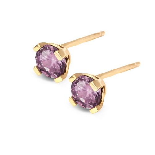 Staviori Kolczyki. Cyrkonia. Żółte Złoto 0,333. Model ozdobiono cyrkoniami w kolorze lila.