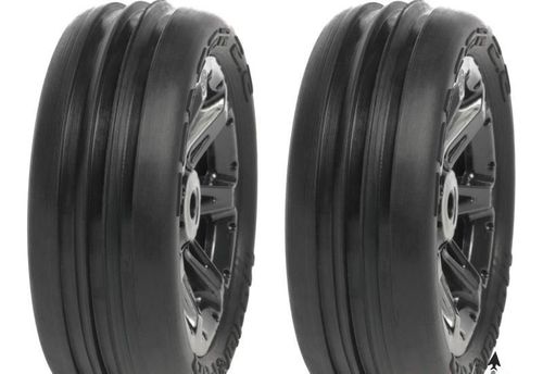 Kompletne koła Medial Pro 2.2” Tracer z felgami Titan odpowiednie na przednią oś modelu Traxxas Bandit 1/10. Rozmiar felgi to O56x24 mm, rozmiar opon o83x30 mm, pin 2 mm.