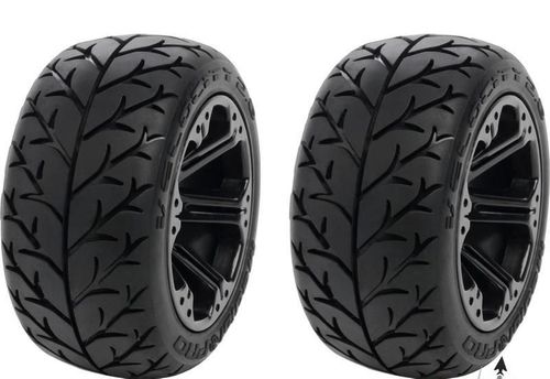 Kompletne koła Medial Pro 2.8” Velocity z felgami Addict odpowiednie na tylną oś modelu Traxxas 1/10 Rustler, Stampede oraz Monster Jam. Rozmiar felgi to O71x49 mm, rozmiar opon o103x50 mm, hex 12mm.
