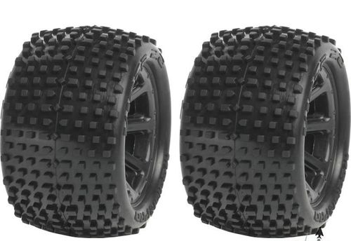 Kompletne koła Medial Pro 2.2” Viper z felgami Cyclon odpowiednie do samochodów Traxxas E-Revo 1/16, Summit 1/16 oraz Monster Jam 1/16. Rozmiar felgi to O56x40 mm, rozmiar opon 86x48 mm, hex 12 mm.