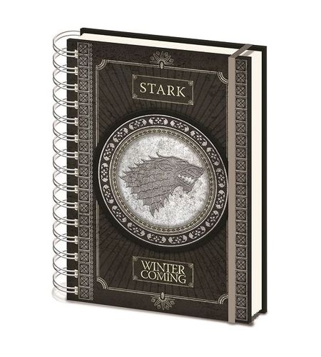 Spiralny notatnik w bardzo modnym wzorze z okładką Gra o Tron. Notatnik zawiera wiele stron w linie. Wykonany z wysokiej jakości materiałów, bardzo funkcjonalny i ozdobny.