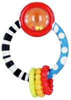 Na jednym końcu grzechotki znajduje się przezroczysta kapsuła, która skrywa w sobie kolorowe koraliki. Gdy dziecko potrząśnie zabawką usłyszy delikatne grzechotanie. Uchwyt grzechotki ma różne wypukłe wzory i zróżnicowaną strukturę powierzchni co przyniesie ukojenie dla ząbkującego Maluszka. Dodatkowo nawleczone są 3 kolorowe kółeczka, które uatrakcyjnią zabawę dziecku. UWAGA! Zabawka może różnić się nieco kolorem.