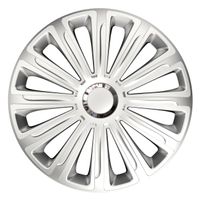 Kołpaki pasują do większości modeli samochodów wyposażonych w stalowe felgi. Dzięki możliwości regulacji obręczy można idealnie dopasować kołpak do felgi. Nie nadają się...Kołpaki pasują do większości modeli samochodów wyposażonych w stalowe felgi. Dzięki możliwości regulacji obręczy można idealnie dopasować kołpak do felgi. Nie nadają się jedynie do felg wypukłych ZALETY: WYSOKA JAKOŚĆ zastosowanego tworzywa ABS WYTRZYMAŁOŚĆ ? odporne na uderzenia i zmienne warunki atmosferyczne BEZPIECZEŃSTWO ? zatrzaski z tworzywa sztucznego nie powodują uszkodzenia felg ŁATWOŚĆ MONTAŻU ? bez użycia dodatkowych narzędzi EFEKTOWNY WYGLĄD Aby wybrać prawidłowy rozmiar kołpaka należy sprawdzić średnicę felgi ? informację taką można odczytać na oponie. Liczba następująca po symbolu ?R? oznacza średnicę opony. MONTAŻ: Zdejmij zbędne pokrywy z felgi i oczyść jej zewnętrzną stronę Ustaw stalowy pierścień rozprężny w pozycji z wcięciem pod wentyl i wciśnij go w gniazda łapek zaciskowych. Przyłóż kołpak do felgi, tak aby miejsce na wentyl w kołpaku pokrywało się z wentylem w feldze. Nałóż kołpak na dolną część felgi, podeprzyj kolanem, górne dwie łapki zaciskowe przyciśnij (uchyl) palcami od góry w dół kołpaka i jednocześnie wciśnij kołpak do wewnątrz rantu felgi. Dociśnij na całym obwodzie felgi.