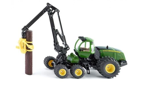Model potężnej maszyny leśniczej John Deere Harvester. Sprawne ścinanie drzew umożliwia specjalna głowica z chwytakami i piłą umieszczona na obrotowym ramieniu.