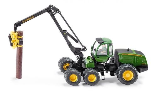 Mobilna kabina i ruchomy podnośnik zapewniają swobodne podnoszenie pali drzewnych dołączonych do zestawu. Gumowe opony umożliwiają swobodne poruszanie po różnych powierzchniach. Model wykonany z metalu z elementami plastikowymi. Doskonała zabawa dla małych farmerów i atrakcyjny model kolekcjonerski.