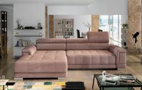 Narożnik posiada funkcję relax zagłówka / podłokietnika, przesuwne oparcie oraz elektryczną regulację głębokości siedziska