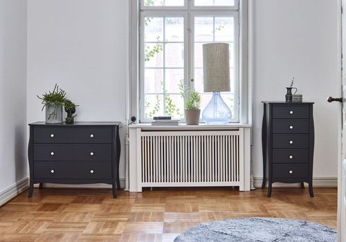 Elegancja, styl, szyk – kolekcja Baroque Barokowy motyw zaakcentowany stylem retro sprawia, że kolekcja mebli wygląda jakby powstała w innej epoce. W dzisiejszych czasach jest to pożądany wygląd mebli, który swoim stylem nawiązuję do przeszłości - do samej Prowansji. Stylowe wykończenia mebli szykowanym cokołem zaakcentowane eleganckimi, szczotkowanymi uchwytami ze stali nierdzewnej sprawiają, że nie można od nich oderwać oczu. Żeby rozmieścić wszystko czego potrzebujesz w swojej sypialni lub przedpokoju nie musisz decydować się na obszerne meble szczególnie kiedy do zagospodarowania posiadasz niewielką przestrzeń. Komoda posiada liczne szuflady, które pozwolą Ci zachować ład oraz organizację w rzeczach codziennego użytku dodatkowo sprawdzi się jako podręczny schowek na dokumenty czy biżuterię. Poza walorami praktycznymi to mebel delikatny o subtelnej prezentacji, który wniesie do pomieszczenia wiele wdzięku i szyku, zapraszając Cię do innej epoki. To po prostu niepowtarzalny mebel, który powinien zostać z Tobą na dłużej!