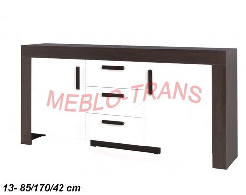 Duża i zarazem pojemna komoda do Państwa salonu. Komoda o szerokości 170 cm wykonana z wysokiej jakości płyty laminowanej odpornej na uszkodzenia i zarysowania. Funkcjonalne szuflady ułatwią przechowywanie ubrań oraz innych przedmiotów w ładzie i porządku.