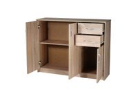 Komoda Grinal to klasyczna forma, która pasuje do przedpokoju, sypialni, salonu czy każdego innego rodzaju pomieszczenia. Ten niepozorny mebel pozwala na praktyczną segregację przedmiotów różnej wielkości. Komoda składa się z dwóch szufladek, małej szafeczki oraz szafki większych rozmiarów przeznaczonej na przedmioty o sporych gabarytach. Powierzchnia komody jest gładka, nie posiada zdobień czy wyszukanych sztukaterii, a jedynie popularne, owalne uchwyty. Komoda charakteryzuje się solidnym wykonaniem, a jej największą zaletą jest prostota. To dobre rozwiązanie dla ludzi ceniących sobie przede wszystkim wygodę.