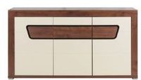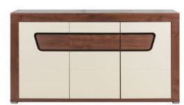 Szeroka komoda to nie tylko mebel, w którym przechowasz mnóstwo przedmiotów. Na jej blacie możesz ustawić dekoracje, rośliny, czy inne elementy wystroju, które stworzą w Twoim wnętrzu niepowtarzalną atmosferę. Mebel posiada troje drzwiczek i trzy półki wewnątrz. Drzwiczki z mechanizmem otwierania na dotyk gwarantują komfort użytkowania. WYMIARYszerokość: 160 cmgłębokość: 40 cmwysokość: 86,5 cm kolor: korpus: orzech front: jaśmin/orzech PRODUKT DO SAMODZIELNEGO MONTAŻU.