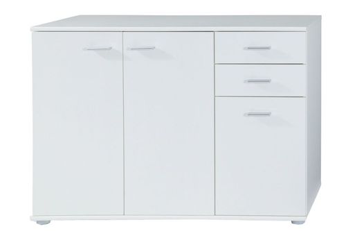 Mebel wyposażony został w dwie części zamknięte oraz dwie szuflady. Dzięki niemu z łatwością posegregują Państwo zarówno ubrania jak i przedmioty codziennego zastosowania. Biała kolorystyka modelu z łatwością wkomponuje się z oryginalną stylistyką kontrastowych dodatków, które ustawione na blacie produktu, zyskują na swoim wyglądzie.