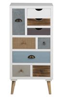 Komoda Thais z 9 szufladami to mariaĆŒ wzorĂłw i stonowanej kolorystyki. KaĆŒda szuflada jest wykoĆczona innÄ fakturÄ w rĂłĆŒnej kolorystyce. PodstawÄ stanowiÄ sosnowe nĂłĆŒki rozstawione pod lekkim kÄ tem dodatkowo zabezpieczone warstwÄ lakieru. Komoda wykonana zostaĆa z pĆyty MDF. WysokoĆÄ: 98