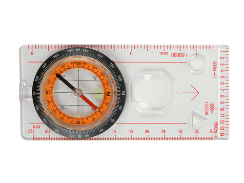 Kompas wyposażony w dużą lupę oraz luminescencyjne znaczniki ułatwiające pracę z mapą. Dokładny przyrząd, dzięki któremu można określić kierunek trasy (np. marszu), określić swoje położenie względem stałych punktów terenowych i w wygodny sposób nanieść to wszystko na mapę. Kompas wraz z dobrą topograficzną mapą terenu (oraz wiedzą jak tego używać) to gwarancja że się nie zgubisz! Kompas Igła magnetyczna w akrylowym pojemniku zanurzona jest w niezamarzającym płynie, co ułatwia dokonywanie pomiaru nawet w niskich temperaturach. Na dnie pojemnika podziałka deklinacyjna oraz południki pomocnicze. Róża kompasowa posiada luminescencyjne znaczniki pozwalające na pracę z kompasem nawet w nocy. Wschód, Zachód, oraz Południe oznaczone są luminescencyjną kropką, natomiast Północ oznaczona jest podwójną, grubą kreską. Ruchomy pierścień z podziałką Brzeg kompasu stanowi ruchomy pierścień z podziałką, pozwalający na odczyt namiaru z mapy. Podstawa Kompas namapowy PILOT poasiada akrylową, przezroczysta podstawę, pozwalającą na łatwą pracę z mapą. Wbudowane szkło powiększające ułatwia odczyt mapy nawet przy słabym oświetlaniu. Podstawa posiada naniesioną strzałkę kierunkową i pomocnicze linije. Linijki i skale Proste brzegi akrylowej podstawy kompasu stanowią linijki skalowane w: milimetrach (mm), kilometrach w skali 1:50000 calach (inch) i metrach w skali 1:25000. Znaczniki Kółko oraz trójkąt do zaznaczania kluczowych punktów trasy na mapie. Linka Dołączona w komplecie, żółta linka pozwala na wygodne noszenie kompasu.