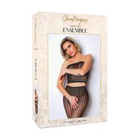 Kuszący komplet wykonany z bezszwowego materiału. Top i spodnie wykonane z elastycznej i bardzo komfortowej miękkiej siateczki o szerokich oczkach. Model idealnie przylega do sylwetki i pomaga wyeksponować jej największe atuty. Bielizna stworzona dla kobiet odważnych, które chcą podkreślić wygląd swojego ciała a także kusić i zniewalać. Całość wykończono prowokującym zmysły, rozcięciem w kroku. Elastyczny materiał jest przyjemny w dotyku i zapewnia idealne dopasowanie dla rozmiarów S, M i L. Bielizna zamknięta jest w pięknym pudełeczku oznaczonym logo producenta