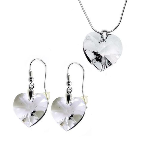 Zachwycający komplet srebrnej biżuterii: naszyjnik łańcuszkowy i kolczyki z serduszkiem. Komplet wykonany w całości z gładkiego srebra najwyższej próby 0,925 z oryginalnymi, certyfikowanymi elementami Swarovskiego: pełnymi blasku, transparentnymi kryształami. Wymiary: Przybliżona waga: 11 gramDługość wisiorka: 2 cmObwód kolii: 42-45 cm Doskonała jakość wykonania gwarantowana. Do każdego produktu dodajemy eleganckie pudełko i metkę jubilerską z pustym miejscem na cenę - tak przygotowana biżuteria staje się idealnym prezentem. Autentyczność kamieni potwierdzona dołączonym do produktu certyfikatem. Swarovski - ogólnoświatowa marka kryształów, które wzięły swoją nazwę od czeskiego szlifierza szkła Daniela Swarovskiego. W ostatnich latach nazwa Swarovski jest synonimem nie tylko kryształów o doskonałym blasku, ale także kreatywności i innowacyjności, wykazywanych przy projektowaniu własnej linii dodatków, ozdób jubilerskich oraz elementów wystroju wnętrz.
