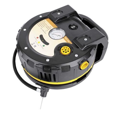 Szybko pompujący kompresor firmy Spokey. Połączenie kompresora i pompy pozwala na pompowanie szerokiego wachlarza produktów – od opon samochodowych po piłki plażowe i materace. Poziom ciśnienia można obserwować na bieżąco dzięki czytelnemu wskaźnikowi. Możliwość podłączenia zarówno na gniazdka 230V, jak i samochodowego. Maksymalne ciśnienie 160 PSI / 11,03 BAR Napięcie znamionowe: 12 V Wbudowana bateria: 3,2 Ah Maksymalne natężenie prądu: 10 A Możliwość podłączenia zarówno do gniazdka 230V, jak i samochodowego