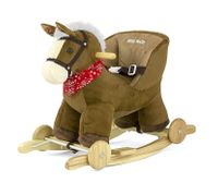 Mięciutki konik na biegunach polly zaprojektowany został z myślą o najmłodszych dzieciach (12m+) dla których tradycyjne koniki na biegunach są za duże. wygodne, wyprofilowane siedzisko w kształcie kanapy i regulowane pasy zapewnią komfort i bezpieczeństwo podczas beztroskiego bujania i przemieszczania maluszka.konik posiada drewniane bieguny z podnóżkami i rączki, które pomogą zachować równowagę podczas zabawy oraz zestaw składanych kółek, dzięki którym w kilka sekund można zamienić go w cudowny pluszowy pojazd.bujak wykonany jest z mięciutkiego i delikatnego w dotyku pluszowego materiału. posiada również, chusteczkę pod szyją, kantar, podnóżki na płozach i interaktywne uszka. przy naciśnięciu jednego z uszek rozlegnie się odgłos galopującego konika wraz z rżeniem, natomiast dotykając drugiego, dziecko usłyszy wesołe rżenie konika.maluszek bawiąc się musi skoordynować ruchy z konikiem co stymuluje jego koordynację ruchową i rozwija wyobraźnię oraz poprawia poczucie równowagi. pluszak szybko zostanie pierwszym towarzyszem zabaw i przyjacielem twojej pociechy.charakterystyka:- drewniane rączki i płozy z podnóżkami- regulowany pas bezpieczeństwa- stabilna konstrukcja- interaktywne uszy- rozkładane kółka- od 12-36 miesięcy- do 30 kg- wygodny fotelik z oparciem- chustka- kantar- mięciutki materiał- deklaracja zgodności ce- konik wymaga dwóch baterii typu aa. kieszeń z bateriami schowana pod brzuchem koniawymiary produktu:wysokość: 50 cmwysokość na kółkach: +3cmdługość płóz: 68cmdługość konika: 51cmszerokość: 34cmwysokość do siedziska: 32cmwysokość od podnóżka do siedziska: 28cmwymiary wewnętrzne siedziska:długość: 20cm- od karku do oparcia*szerokość siedziska: 20 cm*wysokość oparcia: 15 cm*materiał w oparciu dodatkowo się ugina do 4 cmwymiary opakowania:dł:61cm x wys: 47cm x szer: 36cmwaga produktu:netto: 3,7kgbrutto: 4,7kgean: 5901761123982