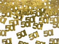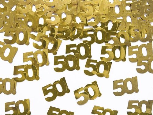 Konfetti są idealnym uzupełnieniem dekoracji przyjęcia urodzinowego na 50 urodziny (pięćdziesiątkę) oraz na rocznice. Ozdobią stół oraz stworzą niepowtarzalną atmosferę jubileuszową. Produkt renomowanej amerykańskiej firmy Amscan.