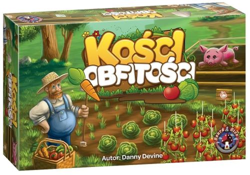 Sadź warzywka, nakarm świniaka i wyturlaj wygraną!Kości obfitości to szybka i zabawna gra oparta na rzucaniu kośćmi. Kolorowe kostki reprezentują rośliny, które będziemy sadzić, gromadzić i sprzedawać na targu (lub karmić słodkiego, różowego świniaka).Na czym to polega?Każda runda rozpoczyna się od rzutu naszymi warzywkami (kostkami), po czym każdy gracz wybiera po jednym, które zasadzi w swoim ogródku (rysując roślinkę w odpowiedniej kolumnie na arkuszu) lub nakarmi nim świnkę PiP.Wybraną kostkę (czerwone to pomidory, zielone to sałata, a pomarańczowe kostki symbolizują marchewki) przerysowujemy do naszego ogródka, pamiętając, że takie same warzywka muszą rosnąć obok siebie (w przeciwnym razie trafiają do brzucha świnki - co też daje nam punkty!).Tak marchewki nie posadzisz!Pomarańczowa kostka marchewki jest nieprzydatna do sadzenia - marchewki muszą rosnąć koło siebie!Ostatnia kostka zostaje na stole i wskazuje, jakie uprawy są tego dnia potrzebne na targu - gracze skreślają po jednym warzywku na swoich arkuszach ryneczku, by na koniec gry wiedzieć, ile punktów za nie otrzymają.Zagraj w Kości obfitości!- turlaj kolorowymi kostkami- planuj jak najoptymalniej zasadzić rośliny- sprzedawaj warzywa na rynku- nakarm świnkę i skorzystaj ze świnkowej mocy- sprawdź dwa tryby rozgrywki - dla nowych lub doświadczonych graczy!