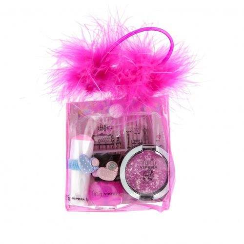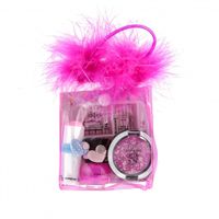 Przejrzystą, pomponiastą Kosmetyczkę TuTu wypełniają pięknie kolorowe, pełne uroku i blasku kosmetyki dla Dziewczynek w wieku 3+. Hipoalergiczny Lakier na bazie wody ściągamy jak naklejkę, metodą peel-off; pełna blasku, z podmuchem koloru, Szminka smakuje jak truskawk; otwartym Cieniem-pieguskiem ciągnionym po pasemku włosów tworzymy super-kolorowy, łatwo zmywalny efekt. Niektórym kosmetykom towarzyszą ozdobne gumki do włosów.