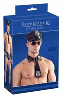Kostium oficera policji składający się ze spodni, kołnierzyka z krótkim krawatem, mankietów i czapki z daszkiem. Spodenki wykonane są z wetlooku i siatki. Kołnierzyk i mankiety zapinane na zatrzaski. Na krawacie i czapce widnieje policyjny emblemat.