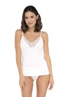 Wysokiej jakości, bawełniana bluzeczka na cieniutkich, regulowanych ramiączkach. Wykonana z miękkiej, przyjemnej w dotyku dzianiny. Miseczki profilowane, wykończone u góry delikatną koronką. Skład: 100% bawełna.