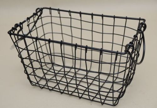 Dekoracyjny prostokątny kosz metalowy w kolorze czarnym z uszami. Kosz bedzie idealny na owoce, zabawki dziecka, kwiaty lub na inne dekoracje.