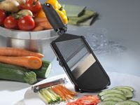Krajalnica z dodatkową nakładką Julienne umożliwiającą krojenie warzyw w cienkie paseczki. Wystarczy nałożyć dołączoną do zestawu nakładkę.