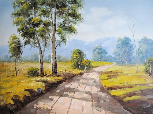 Obrazy olejny na płótnie! Wykonany pędzlem i szpachlą. Dostępny bez blejtramu. Sygnowany i werniksowany. Przedstawia scenę krajobrazową o atrakcyjnej stylistyce malarskiej. Rozmiar 60x90cm. Bardzo atrakcyjna cena!
