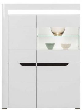 Jego prosty charakter podkreśla pogrubiona rama, w której umieszczono front i przeszklenie, znajdujące się w górnej części prawych drzwiczek. Wewnątrz znajdziesz pojemne półki, które pozwolą nie tylko na przechowanie niezbędnych w danym pomieszczeniu przedmiotów, ale także wyeksponowanie ozdób i dekoracji. Występuje w 3 wersjach kolorystycznych do wyboru. Podświetlenie led zewnętrzne w standardzie. KOLOR:1 korpus: dąb front: biały połysk 2 korpus: biały front: biały połysk 3 korpus: dab magia front biały połysk Wymiary:szerokość:100 cmgłębokość: 39 cmwysokość: 134,5 cm PRODUKT DO SAMODZIELNEGO MONTAŻU.