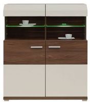 Kredens z nowoczesnego i ciekawego systemu meblowego Moka. Częściowo szklane drzwi w górnej części mebla pozwolą na wyeksponowanie ulubionych dekoracji. Podświetlenie led w standardzie. WYMIARY:szerokośc: 99,5cmgłębokość: 40 cmwysokość: 114,5 cm PRODUKT DO SAMODZIELNEGO MONTAŻU. KOLOR: beż połysk-wiśnia