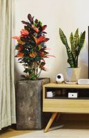 Obsługa i pielęgnacja:Kroton wymaga bardzo dobrych warunków świetlnych. Im więcej światła tym żywsze ubarwienie tej rośliny. Kroton może być trzymany bezpośrednio na słońcu, jednak w takim wypadku nie należy zraszać liści, aby uniknąć ich poparzenia. Zbyt ciemne stanowisko powoduje blaknięcie liści, stają się one czysto zielone. UWAGA! Liście krotonu są trujące. | ![]() |