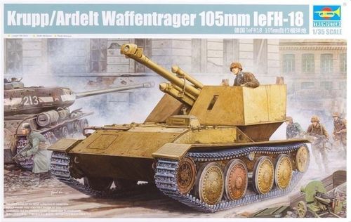 KruppArdelt Waffentrager 105mm leFH18. Zestaw zawiera plastikowy model działa przeciwpancernego do sklejania.