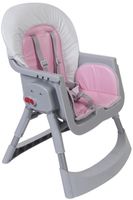 zdejmowany blat z odczepianą tacką i trójstopniową regulacją wysunięcia, wyścielane siedzisko z materiału, który łatwo utrzymać w czystości, 5-punktowe pasy bezpieczeństwa oraz składane nogi, co ułatwia przechowywanie krzesełka.